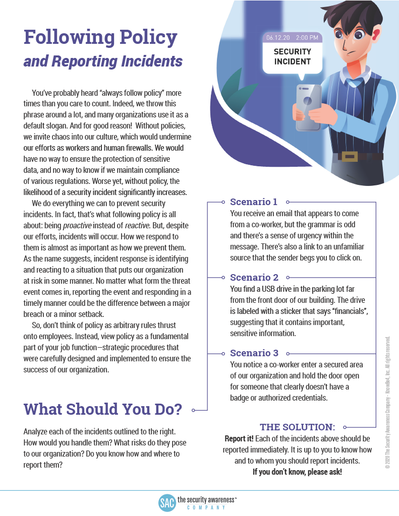 Following Policy and Reporting Incidents