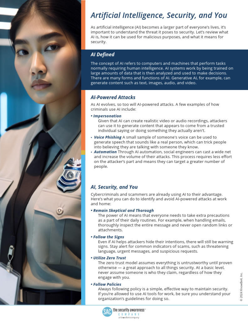 This week, we are providing resources to help us level up our game to easily identify AI threats and keep the bad actors at bay. The training resources can be found under the Library Tab after you log in.