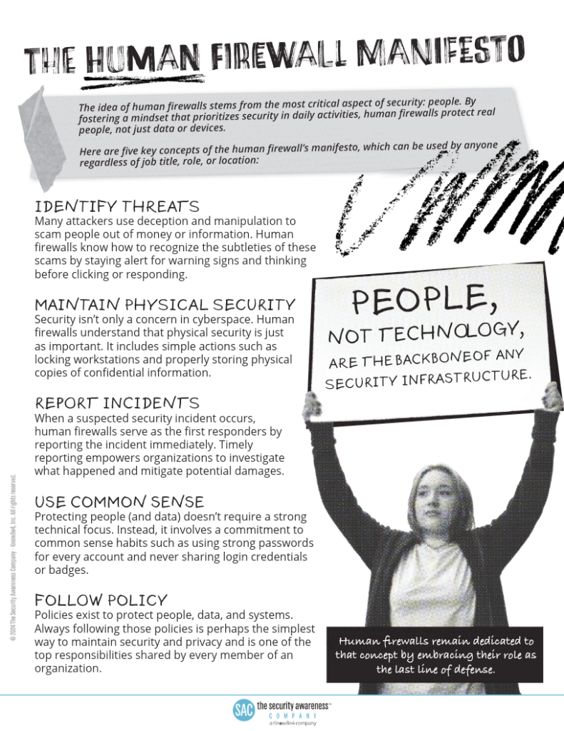 Here are five key concepts of the human firewalls' manifesto: