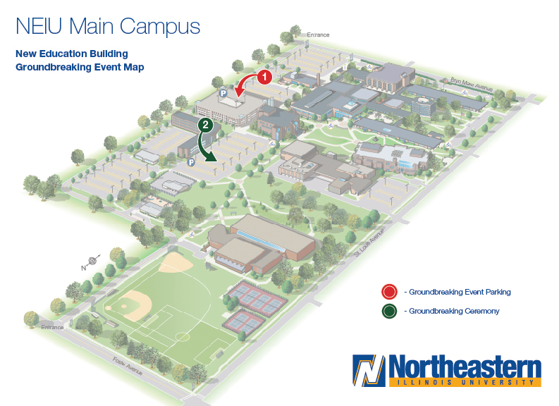 The ceremony will be held on the building construction site at Northeastern Illinois University’s Main Campus. Navigate to 3701 West Bryn Mawr Avenue, Chicago, Illinois 60625 and look for event signage and volunteers on-site to help guide you.